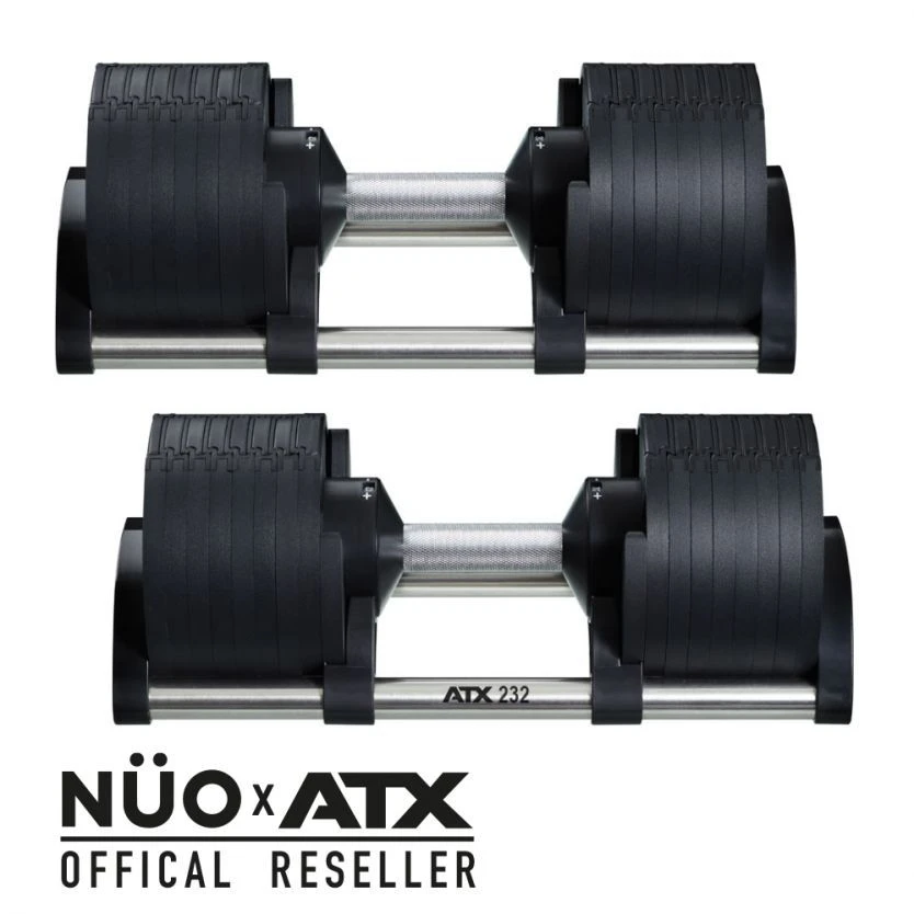 The ATX Adjustable dumbbell combines dumbbell weights from 2 to 32 kg in an extremely quickly changeable dumbbell system. The dumbbell system impresses with its extremely fast and safe handling and extremely compact dimensions.