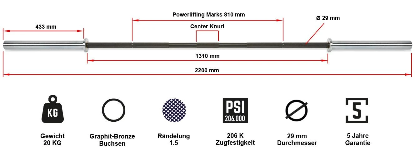- The bar has a black oxide finish and hard-chrome sleeves.