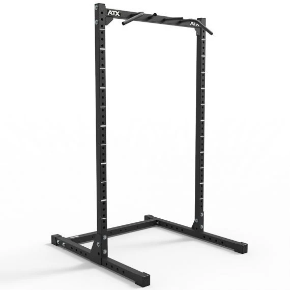 The 620 Half rack is a space-saving half rack that offers the perfect framework for a varied, difficult and effective workout. Whether for squats, bench presses, barbell rows or shoulder press – for all these and other highly effective exercises, this very heavy-duty Half Rack in T op design is the ideal framework . The generously sized load limit allows even very powerful athletes a heavy training without compromising in terms of safety and handling. In addition, the ATX Half rack 620 impresses with numerous expansion options for maximum individualization . For safe training at the performance limit, optionally available emergency trays can be installed quickly, easily and as required at the desired height.