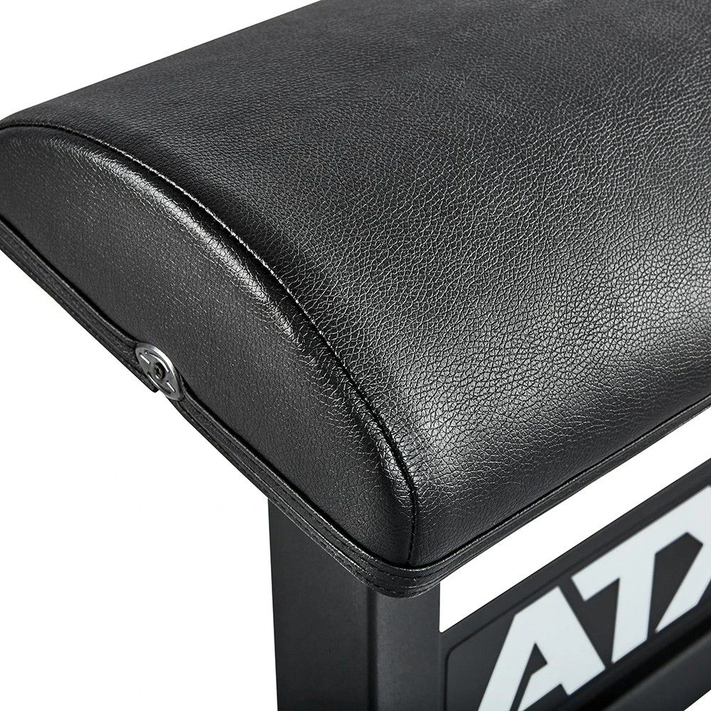 The hip thrust bench is a compact speciality bench for training glutes, legs and lower back. The angled foot plate and pad gives the best position for exercising and makes it easier and safer then using a gym bench. The band pegs give you the option to chose the desired resistance with or with out a a bar and plates. The roller band pegs give resistance bands a smooth friction free movement. With integrated rollers for easy repositioning. This bench has a load capacity of 250kg.