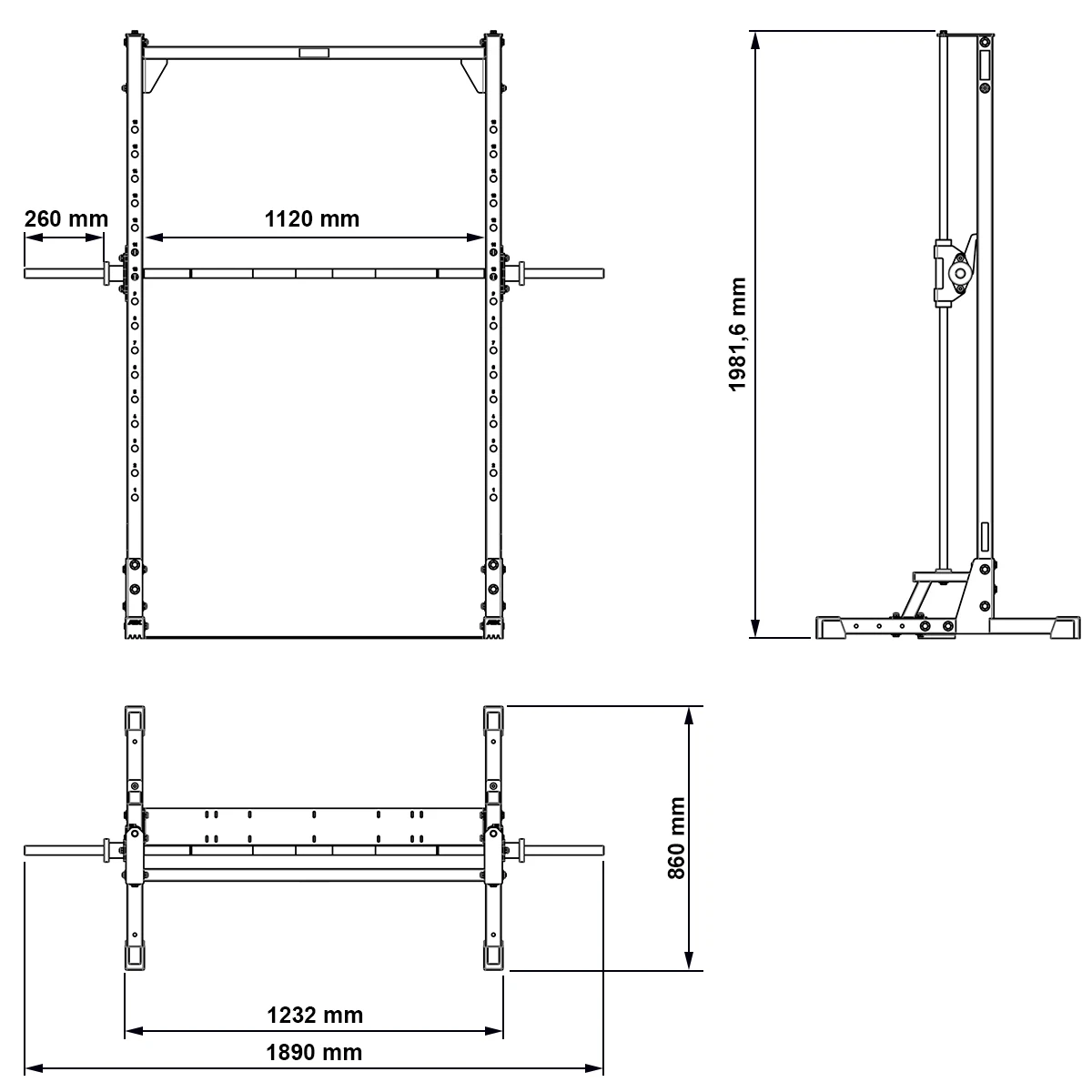 | Width of barbell supports | 123 cm |
