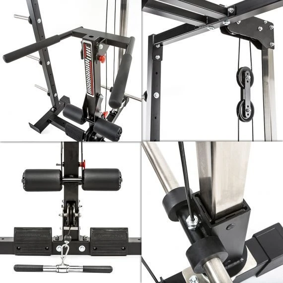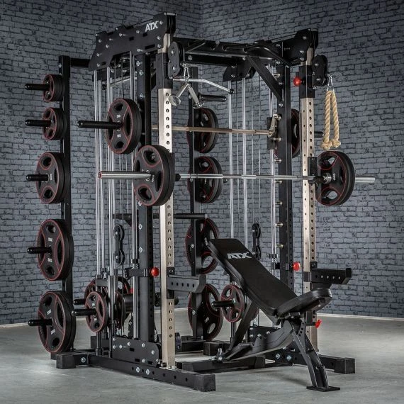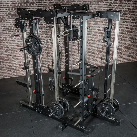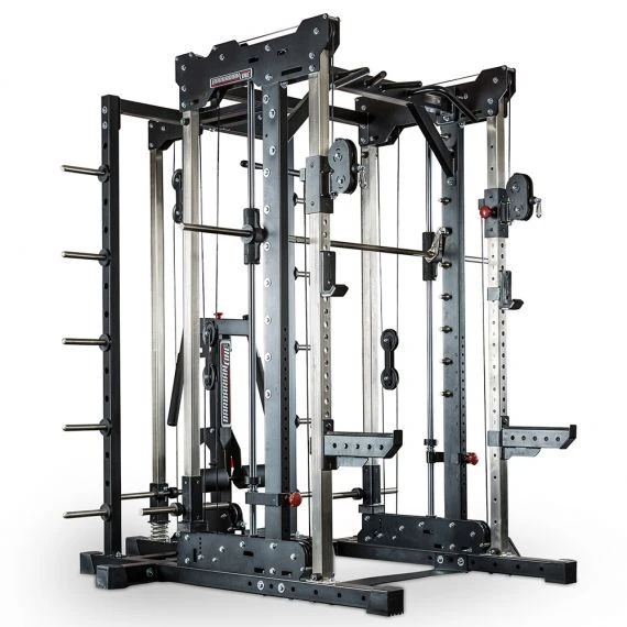 With a relatively small footprint and only 230cm in height, the ATX INVADER multigym is the ideal set-up for PT and garage gyms. Pretty uncompromising, the machine benefits from the excellent Barbarian Line build-quality and multiple stations in one…including a dual adjustable pulley, pull-up bars, smith machine and half rack…this “extreme” version adds to this a lat pulldown and low row, weight plates storage and a foldable dip station.