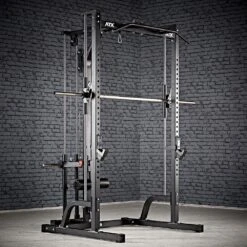 The ever-popular and great priced compact smith machine with free rack from MegaTec Fitness (now rebranded ATX 600-series!) is offered here with a plate-load (olympic) lat pulldown attachment; this set up makes for a serious home gym. See ‘Related Items’ for our bench recommendation.