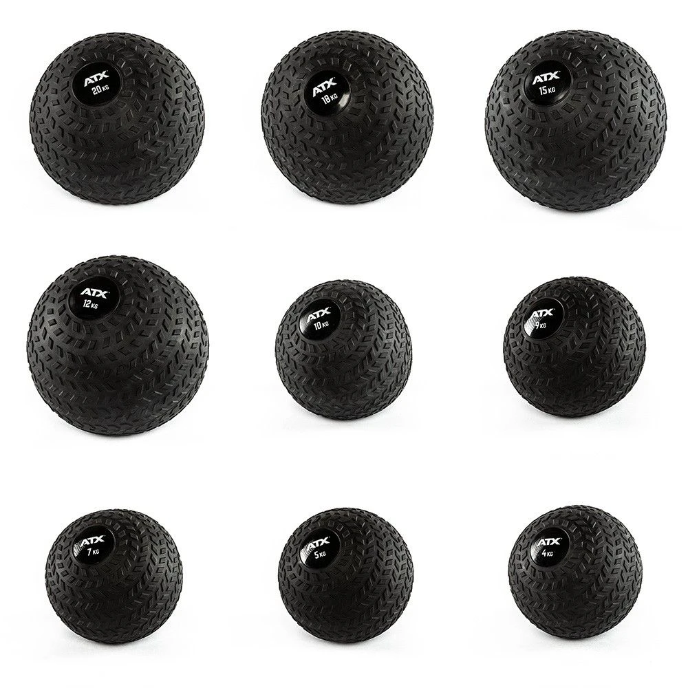 The ATX Tyre-Tread No-Bounce Slam Balls are available in 9 different increments. Each ball is black in colour and states in white print the ATX logo and the increment number in kg.Â