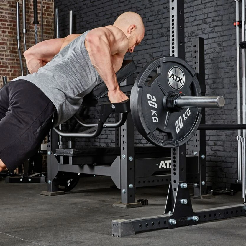 The pad has 5 different adjustment angles, a horizontal sitting position and 4 different inclined positions and can easily be changed between each position with the pin. The pad weighs just 13kg and cab be quickly and easily attached and removed via the screw on locking handle. Fits all ATX 600/700/800 series power racks and half racks.