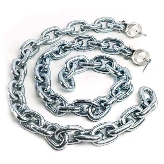 Popular for getting past strength plateaux’s or in rehabilitation use. Similar to power band work, there’s less weight at the mid-position of many movements. We’ll use the squat exercise as an example, chains used alongside weight plates are a good way of reducing load at the mid-position of the squat. This chains sets offer good size links in order that they ruck up well in use (this is an important factor!).