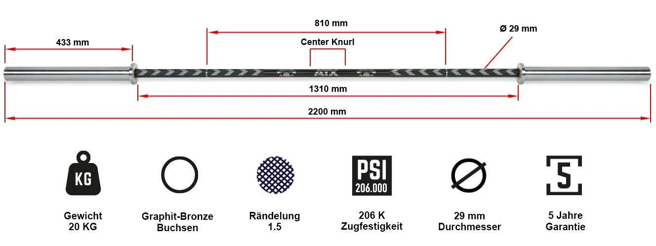 - Knurling in the middle of the bar.