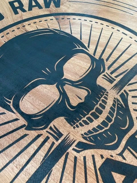 Please note that with laser-burning, the colour/ shade of the burn can vary between boards, due to them being natural products. While the above has burnt very dark, others can be much lighter, particularly on our preferred birch. If a strong colour is important, or you are purchasing multiple platforms, we recommend ordering vinyl please.